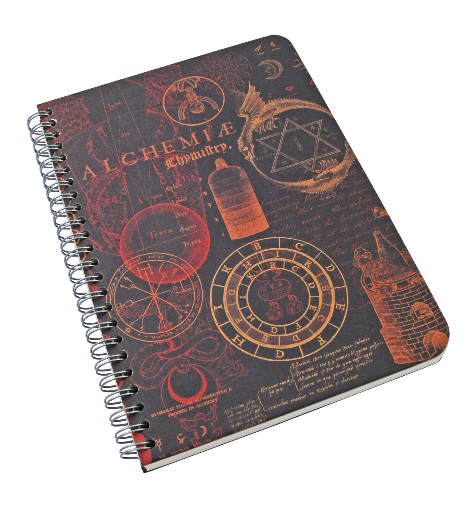 Transmutez vos pensées en mots dans ce carnet à écrire, avec sa couverture aux symboles alchimiques.