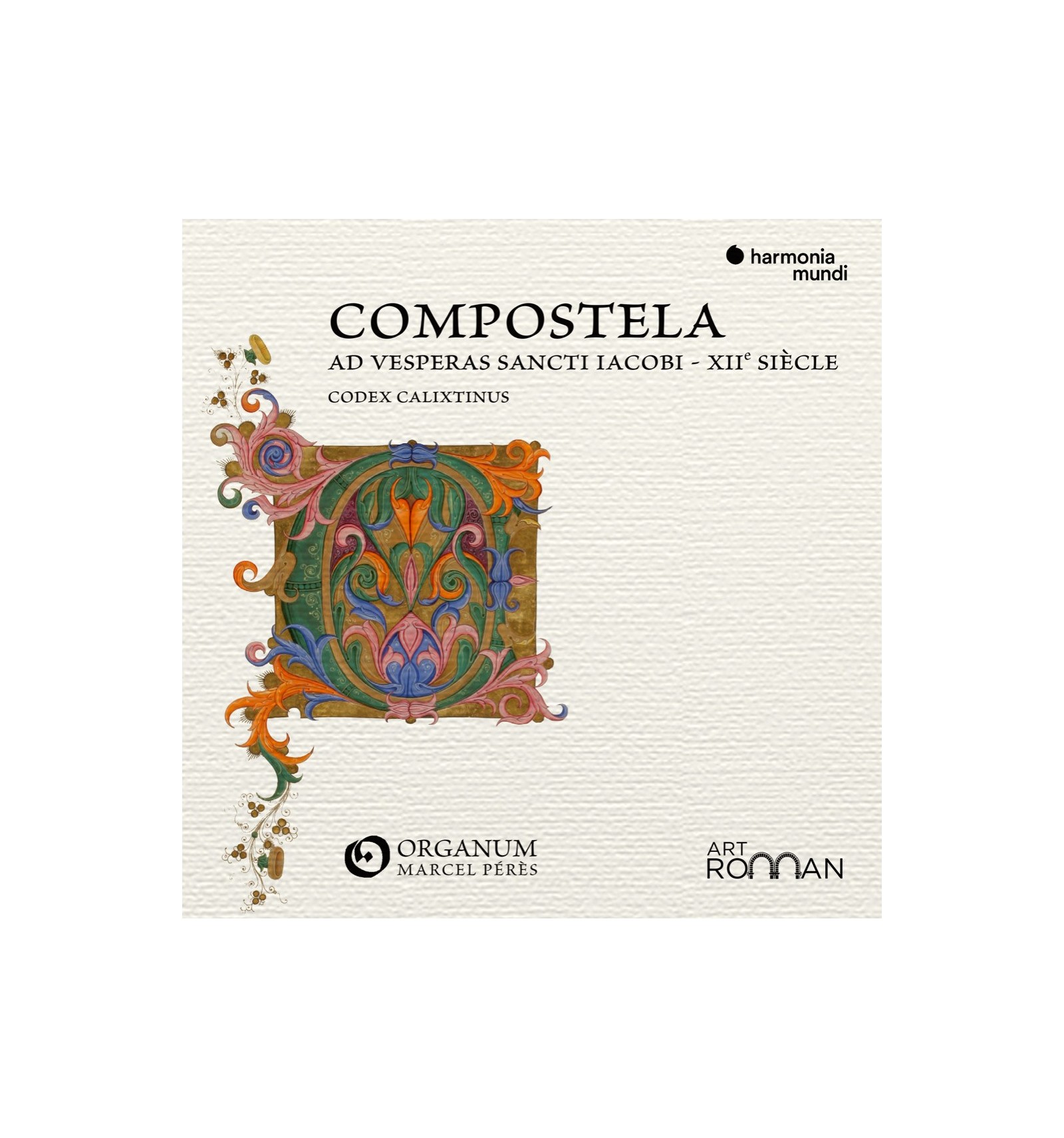 Since the 9th Century, the paths of Compostela have attracted many pilgrims. But what do we know of the chants for the offices devoted to the glory of the apostle since its beginnings? Thanks to the remarkable work of Marcel Pérès on the Codex Calixtinus conserved at the Santiago de Compostela cathedral, this album reproduces the treasures of this precious 12th Century manuscript.